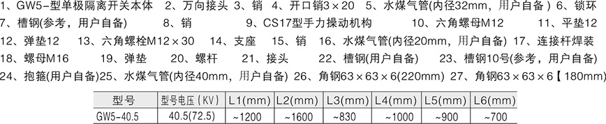 GW5-40.5(72.5)戶(hù)外高壓交流隔離開(kāi)關(guān)為交流50Hz的戶(hù)外高壓電器設備,額定電壓等級有40.5kV,供高壓線(xiàn)路在無(wú)負載情況下進(jìn)行開(kāi)合,以及對被檢修高壓母線(xiàn)、斷路器等電氣設備帶電的高壓線(xiàn)路進(jìn)行電氣隔離之用,也可用于開(kāi)、合小的電容或電感電流。